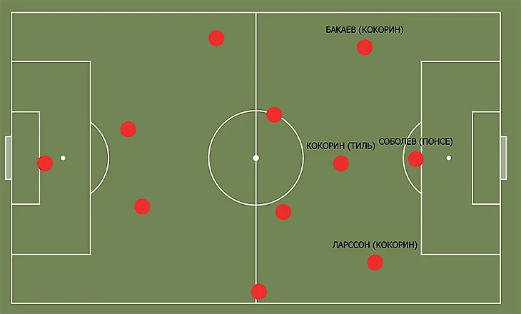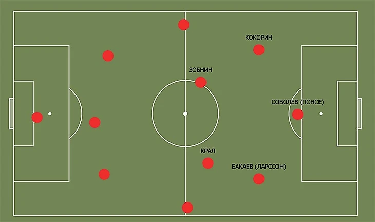 Поэтому, если переносить расположение Кокорина при 3-4-3 на «Спартак», получается примерно так.