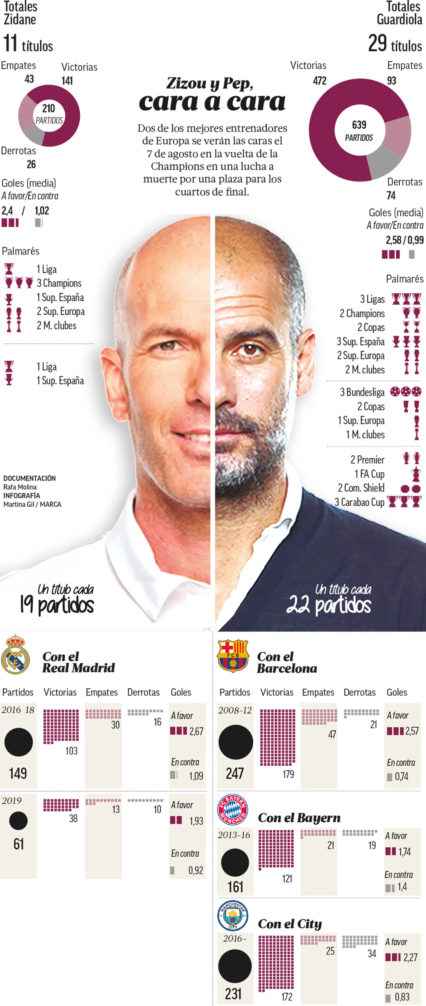 Статистика тренерской карьеры Зинедина Зидана и Пеп Гвардиолы