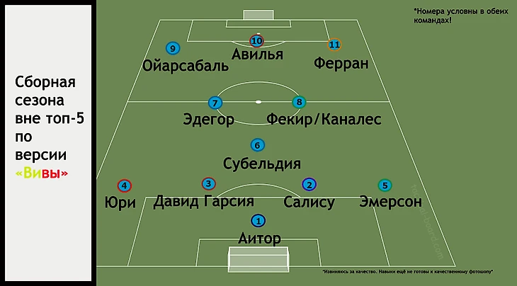 Из остального состава «Барсы», близки к попаданию были лишь Жерар Пике (он провёл классный сезон, но образцовая игра Мартинеса заслужила внимания) и Луис Суарес (но он вчистую проиграл конкуренцию что Морено, что Бензема). Остальные провели очень странный игровой год.