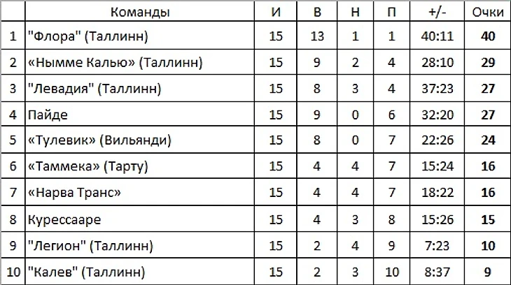 Нарвский "Транс" набрал 16 очков и поднялся на седьмое место, обогнав как раз-таки команду Курессааре на один балл.