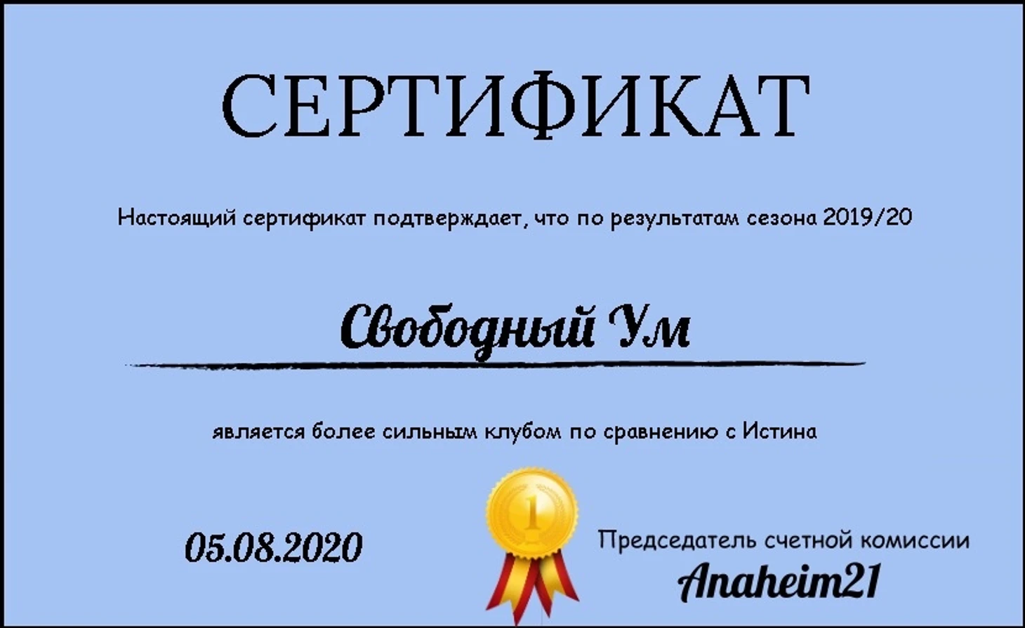 Ну и бонусом, по итогам сравнения, если его результаты вас устраивают, вы можете забрать себе в Зал Славы самый настоящий Сертификат, свидетельствующий о вашей доминации над соперником в ходе данного сезона. Сертификат находится внизу, под таблицами по чемпионатам.