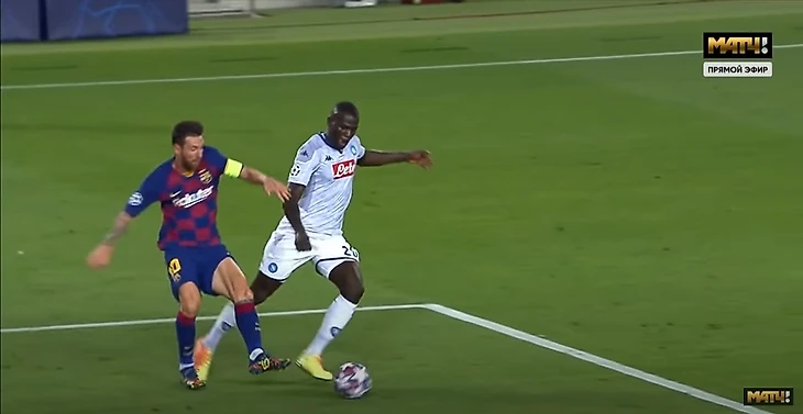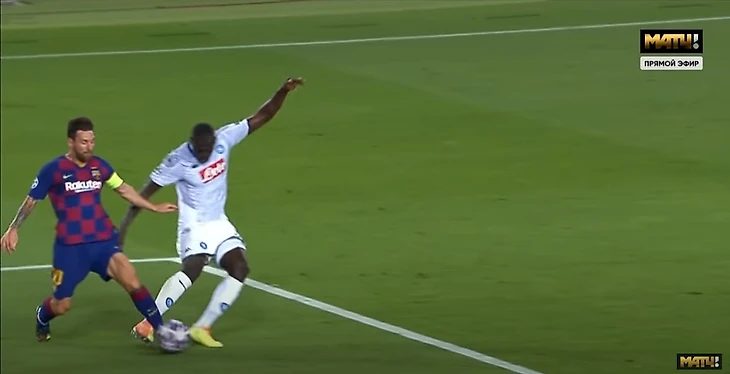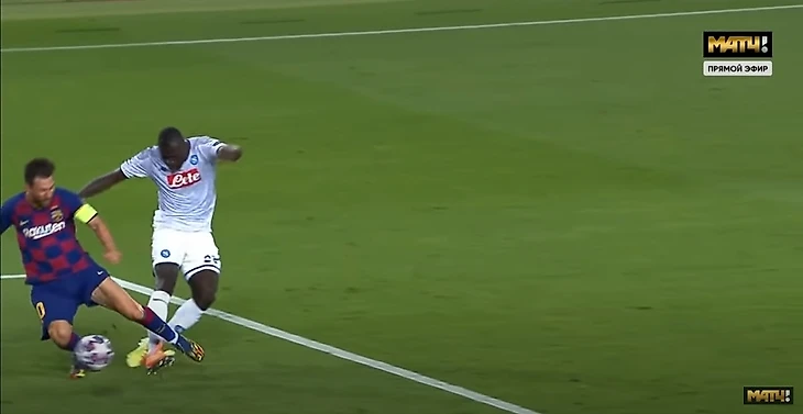 На повторе четко видно, что Кулибали в попытке вынести мяч врезал по голеностопу, выскочившего из-за его спины, Лионеля Месси.