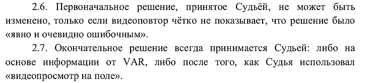 Разбираемся... Читаем приложение No1 к Регламенту ТИНЬКОФФ Российской Премьер-Лиги (Использование системы VAR в матчах Чемпионата (РПЛ).) Пункт 2.6