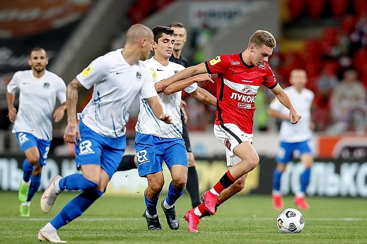 В прессинге красно-белые действовали по расстановке 5-3-2. Тогда либо Глушенков, либо Бакаев присоединялись к двум форвардам, позиционно перекрывая зоны. При этом оба футболиста по два раза заблокировали пасы соперника.