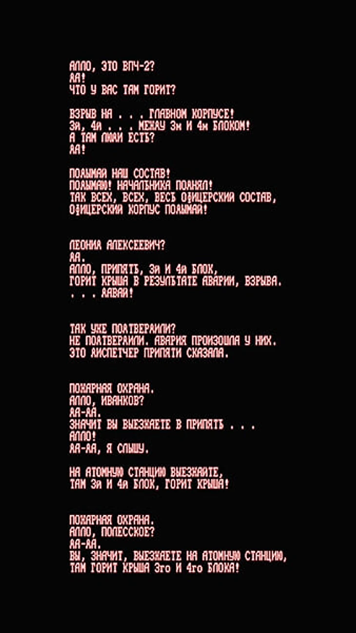 Герой «Чернобыля» не понимает, почему взорвался реактор – ведь он нажал АЗ-5. «Мы все сделали правильно», – в недоумении говорит он напарнику. В голосах Казарцева и Еськова – такой же липкий страх неизвестного, такое же ощущение катастрофы, такая же стена непонимания. Вероятно, из-за этого оба не в силах извиниться – ошибку в целом признают (Казарцева убедил просмотр повтора), но оправдываются до последнего.