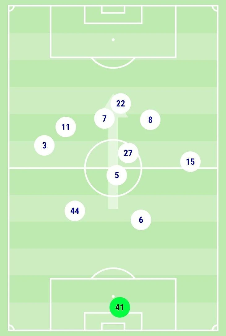 1. Зенит вышел в том же составе, что и тремя днями ранее. Но это уже не та 4-4-2, что была в прошлом сезоне. Ключевым отличием от старой модели стало наличие ещё более интенсивного прессинга. Но вряд ли Семак решил бы играть более энергозатратно, когда предстоят 6 матчей за 19 дней. Покупка Ловрена на замену более медленному Ивановичу позволила Зениту значительно поднять линию обороны, тем самым уменьшив себе зону в которой необходимо идти в контрпрессинг/прессинговать.