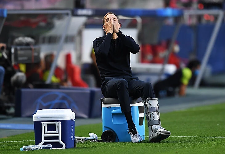Томас Тухель, который из-за травмы сидит на тележке, тоже переживает.