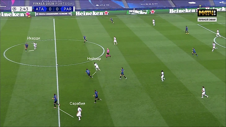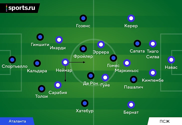 Стартовый состав обошелся без больших сюрпризов. Но из-за гибкости игроков Тухель мог расставить их в трех разных схемах (как минимум). Был вариант с переходом на тройку защитников под «Аталанту» (неудачно, но похожий прием немец пробовал с «Дортмундом»). Был вариант с 4-3-3: Неймар – слева, Икарди – в центре, Сарабия – справа.