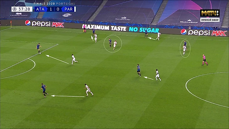 Во-первых, Андер Эррера и Идрисса Гуйе при розыгрышах пытались вытянуть поглубже опорников «Аталанты» Мартена Де Рона и Ремо Фройлера: