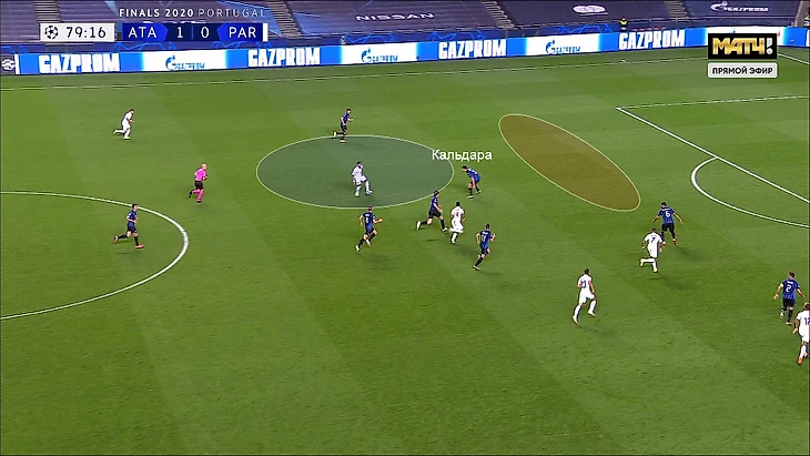 Это увеличивало разрыв между полузащитой и защитой «Аталанты». Кальдара всегда оказывался перед трудным выбором – опекать Неймара 1-в-1 на большом пространстве, либо держать линию защиты и оставлять Неймара свободным. Учитывая индивидуальный уровень бразильца, хорошего решения тут просто не было.
