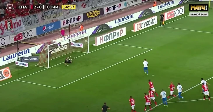 Но пенальти - это не гол, его еще реализовать нужно. К сожалению для болельщиков красно-белых, у соперников их команды это получается неплохо: 6 из 7 одиннадцатиметровых ударов закончились голом, а тот, что Максименко удалось отразить - точным добиванием Лесового.