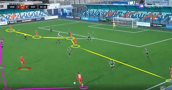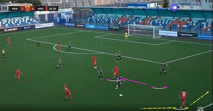 Прессинг защитников «Енисея» в первые минуты матча против «Нефтехимика» принес гостям результат в виде гола. Это в очередной раз убеждает в том, что прессинг защитной линии в ФНЛ является хорошей идеей. Огромное количество потерь, неточных передач, опасных моментов создаются в этой лиге за счет высокого давления на оборону.