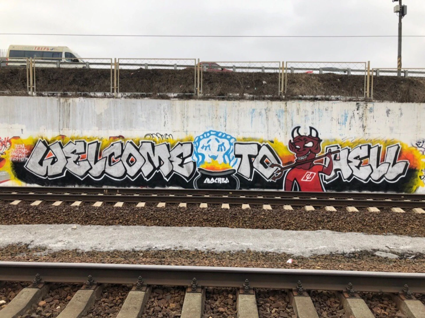 Граффити спартаковских ультрас как бы отсылает к эмблеме «МЮ», изображающей дьявола с трезубцем. Кстати, гладиатор, сражавшийся этим оружием, назывался ретиарием.