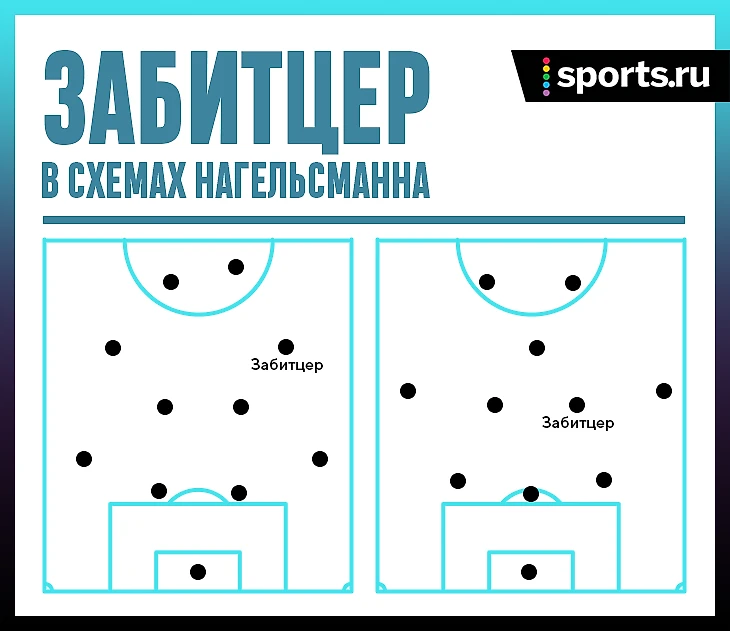 Пожалуй, одно из основных направлений, в котором развил Забитцера Нагельсманн – столь любимая Юлианом универсальность. В детстве Марсель фанател от Стивена Джеррарда, а уже в 20 лет был достаточно гибок и в атаке долгое время использовался практически на всех позициях. У более зрелого Забитцера сначала Рангник, а потом Нагельсманн развивали гибкость в центре поля. Первые попытки Рангника использовать Забитцера глубже были доведены до абсолюта во втором круге сезона-2019/20, когда после ухода Демме и с еще не успевшим восстановиться после операции Камплем «Лейпциг» потерял одного человека в центре поля.
