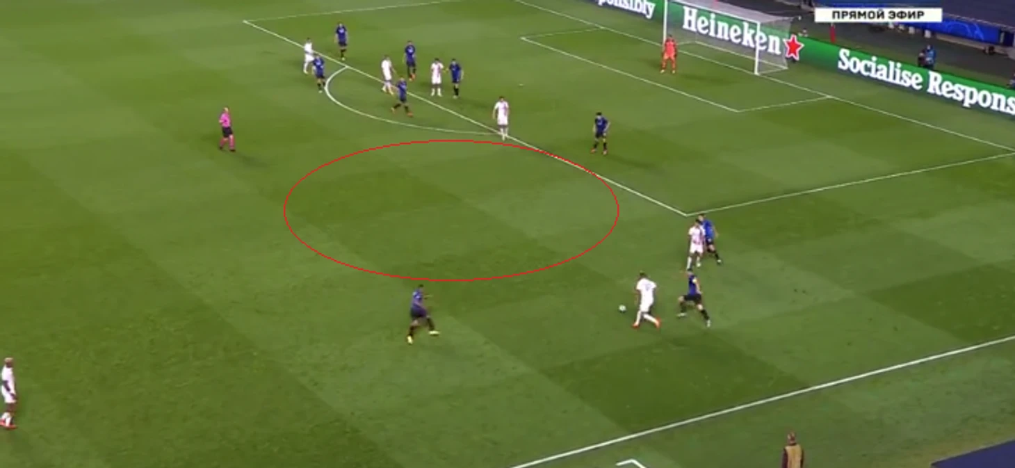 Преимущество парижан в игре 1 в 1 приводило к эпизодам. который отображен на скрине выше - Неймар собрал вокруг себя сразу троих оппонентов, что автоматически освобождает пространство в других зонах.