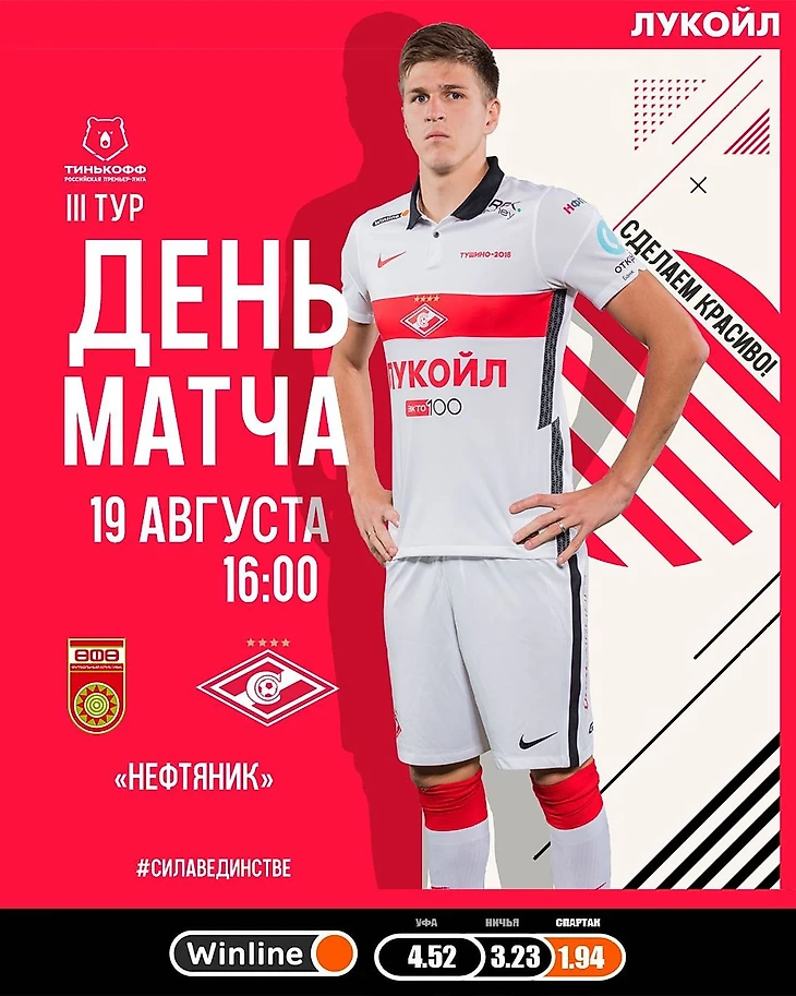 Отдельно про Александра Соболева — он вписан в плакат с помощью тени, вот только почему она за днем матча и перед датой? Надписи не настолько уж разных уровней.