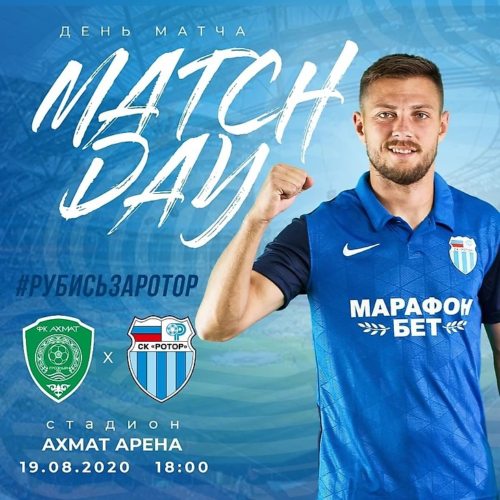 Новичок РПЛ «Ротор» позаботился об исключительно русскоязычных болельщиках и зачем-то продублировал «Match day» на русском. Не то чтобы я советую остановиться на чем-то одном, но если освободить место от повтора, то можно будет написать там новую информацию.