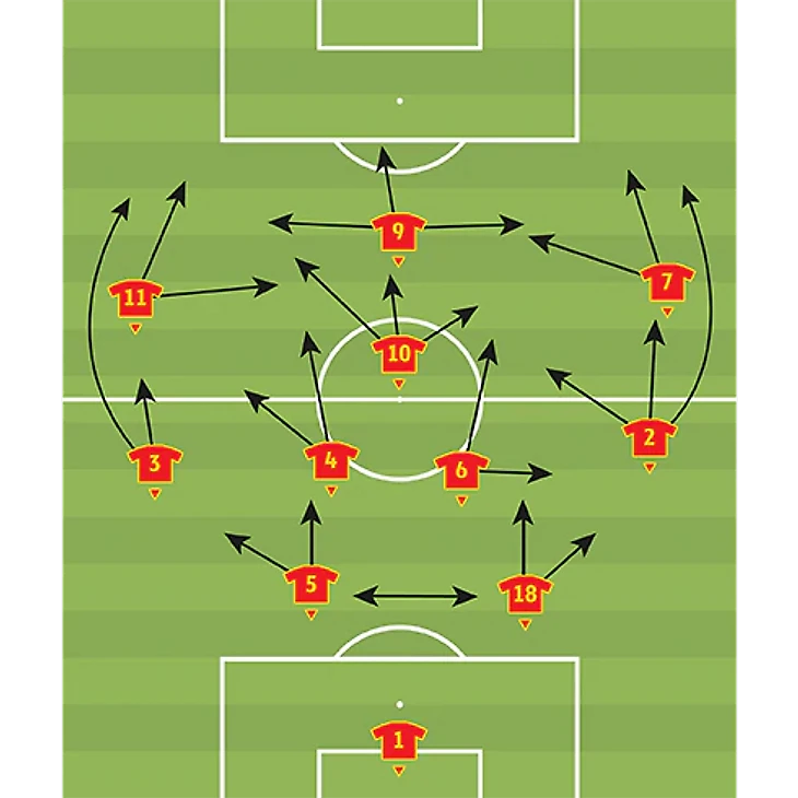 В конечном итоге, благодаря «вертикальности» схемы вы можете распределять мяч между линиями достаточно эффективно. Конечно, для этого нужны игроки с достаточным уровнем мастерства, умеющие играть в высоком темпе. Впрочем, в зависимости от кадровых возможностей в конкретной команде, можно использовать различные тактические варианты с оттянутым или высоким плеймейкером.