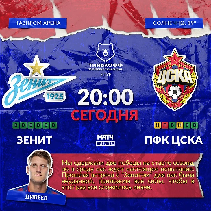 Кстати, ЦСКА единственный не упомянул на постере РПЛ. А так можно было? Или достаточно хотя бы на одной картинке? Постер в твиттере уникальный — в других соцсетях клуб копирует вариант плаката из инстаграма.