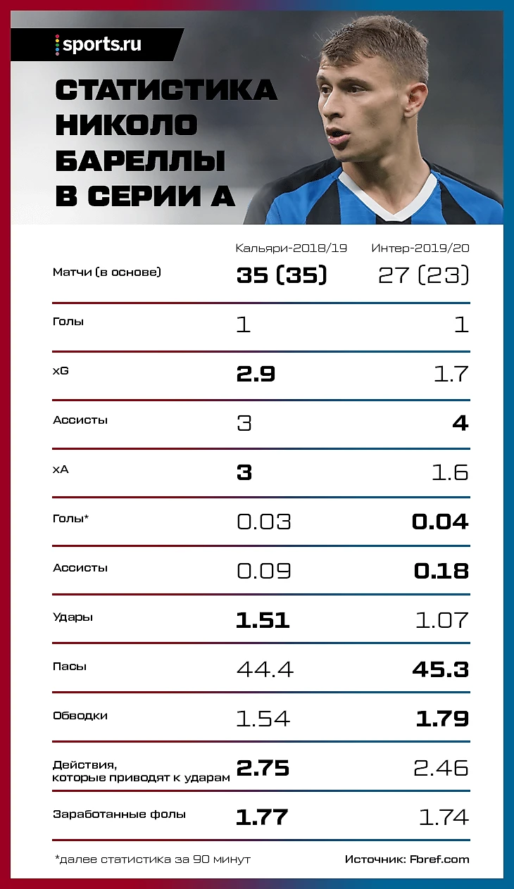 За сезон Николо провел на поле 2995 минут, в «Интере» он 7-й по этому показателю, хотя пропустил весь декабрь из-за травмы колена. Миланский клуб, скорее всего, выкупит Сенси у «Сассуоло», а по Барелле все решили еще прошлым летом – его арендовали с обязательным выкупом. Барелла стоил «Интеру» 45 миллионов евро (12 за аренду, 25 за трансфер и 8 как легко достижимые бонусы) – больше клуб платил только за Ромелу Лукаку (74 млн) и Кристиана Вьери (46,5 млн).