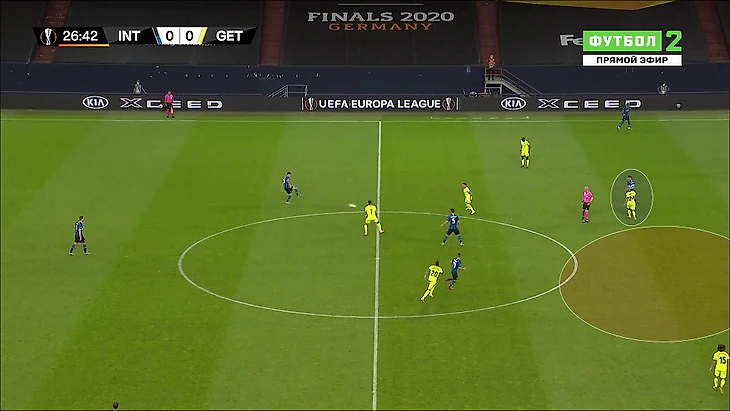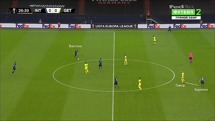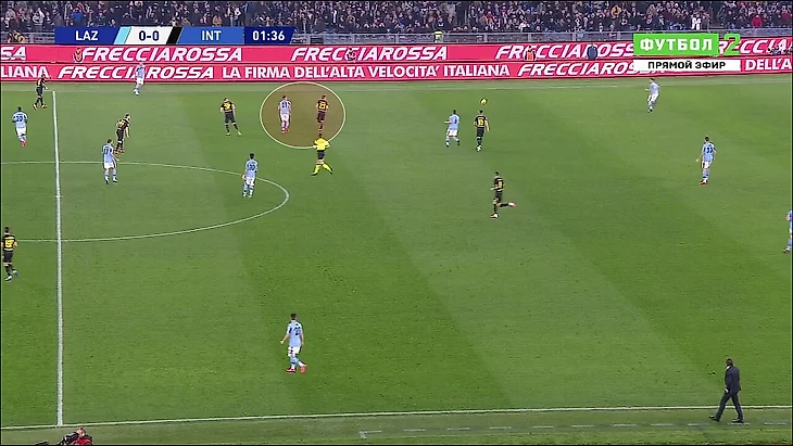 Сам по себе такой план требует невероятной выносливости и дисциплинированности – нужно оценивать позицию оппонента по полузащите и в правильный момент выдвигаться в прессинг (и многократно возвращаться). Барелла блестяще справился: