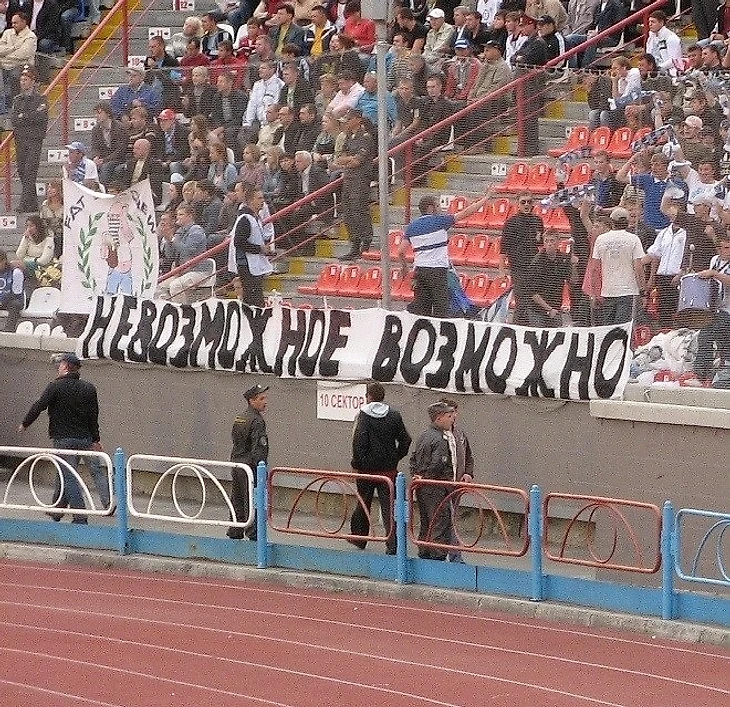 На скорую руку фанаты нашли ткань и баллончики с краской, оставшиеся после рисования других баннеров. «Судорожно пытаемся придумать что-то воодушевляющее. Но реально понимаем, что пройти «ПСВ» - это что-то нереальное. И тут в голову приходит слоган из рекламы компании «Адидас» «Невозможное возможно». Идею все одобрили. Это было именно то, что нужно. И уж точно никто не ожидал, что это будут пророческие слова», - вспоминает Виталий.