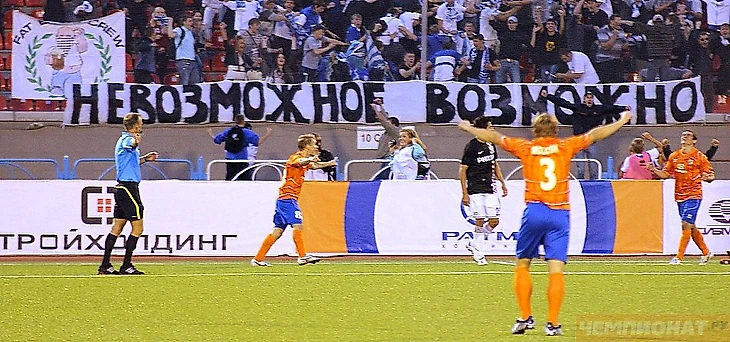 Да-да, киприоты преодолели более шести тысяч километров, чтобы попасть на новосибирский стадион. Местные болельщики растянули баннер с оскорблениями на греческом языке в адрес «АЕЛа» - ненавистного соперника «Аполлона». В свою очередь, киприоты, на ответной игре в Лимасоле, на русском языке поругали томскую «Томь». Баннер провисел все 90 минут.