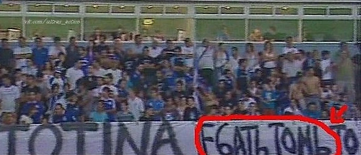«На игру с «ПСВ» мы готовили перф на всю трибуну. Так как на предыдущем матче с «Аполлоном» плашки на серверной трибуне смотрелись не так, как мы хотели, было решено разместить их на восточной. По середине, где сидели журналисты, мы растянули небольшое полотнище с кубком, а по разные стороны от него - плашки с российским флагом и имперским. На серверной трибуне подняли большое полотно с изображением воинов с щитами, на которых были нанесены номера ключевых игроков. И буквально за несколько минут до матча понимаем, что текстового посыла у нас нет», - поделился заводящий трибуны Виталий.