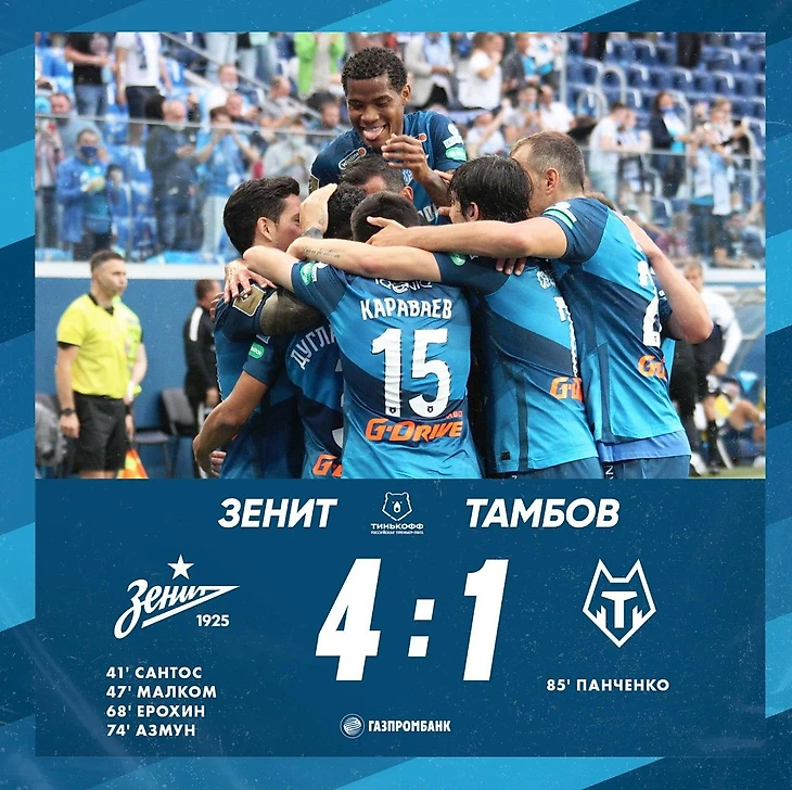 4. Очень символично, что именно Сантос забил первый мяч Зенита в этой встрече(и первый за Зенит). Диспетчерские качества бразильца раскрылись в полной мере, когда Тамбов оборонялся низким блоком. Скорее всего, тренерский штаб продолжит использовать главного универсала питерцев в этой роли, когда будет необходимо "взломать автобус".