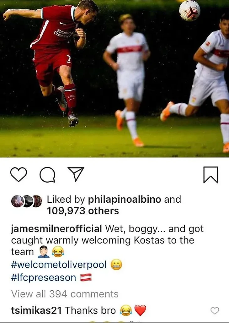 В первом товарищеском матче предсезонки одним из самых запоминающихся моментов было «приветствие» Джеймса Милнера в адрес новичка Костантиноса Цимикаса.