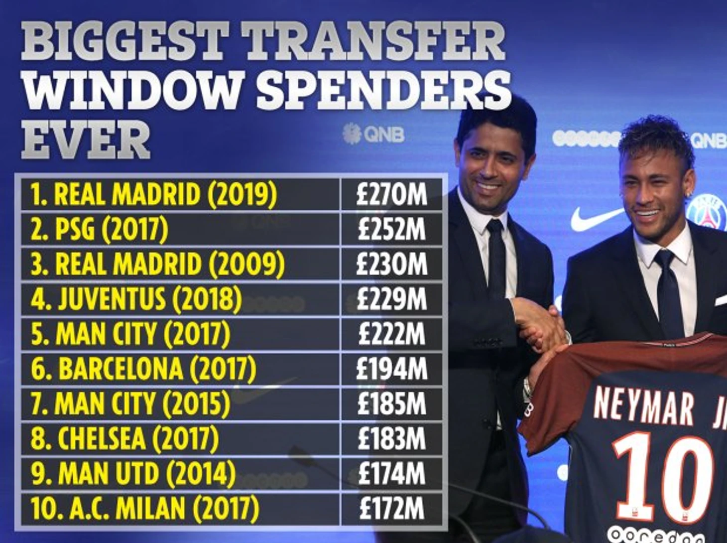 Крупнейшие трансферные окна в истории: дважды «Реал» и «Сити», «ПСЖ», «Барселона» и «МЮ»