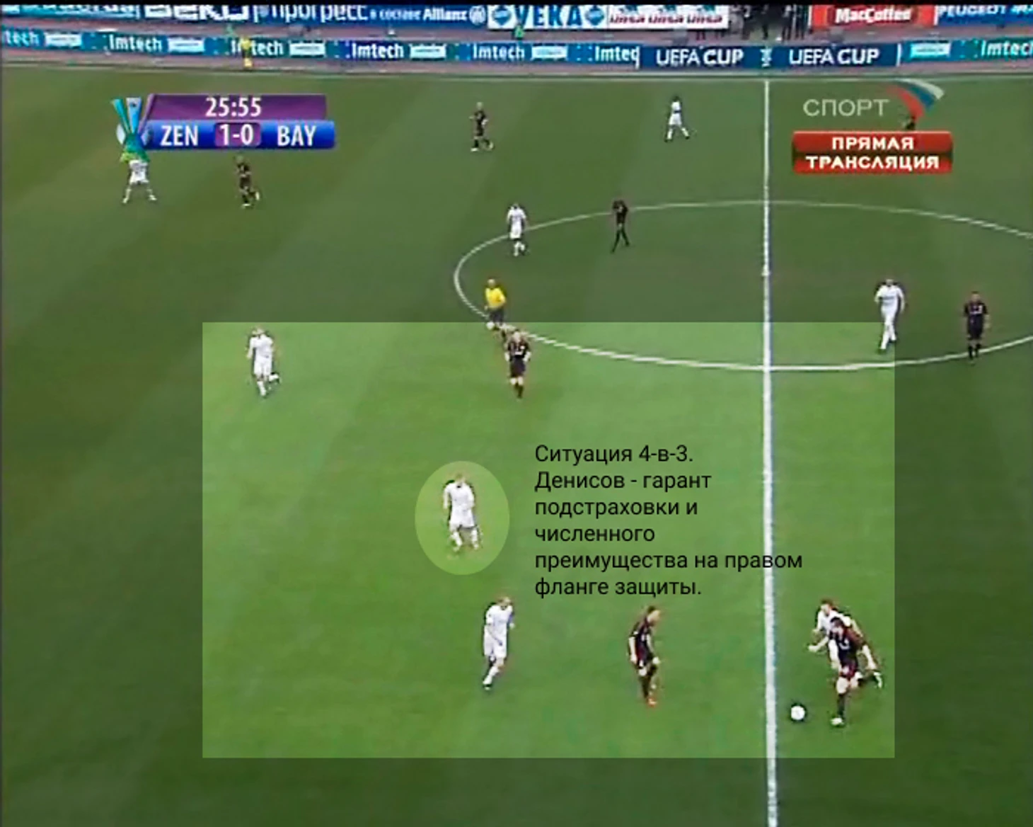 Подобные манёвры полностью перекрыли кислород Клозе – ему не удавалось действовать на одной линии с Тони, так как у наших центрдэфов была классная подстраховка в виде Тимощука и блистательного Горшкова, и благодаря Денисову были невозможны действия Мирослава между линиями.