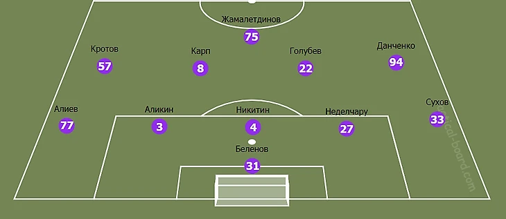 Валерий Карпин в отличие от оппонента сделал несколько перестановок. Впервые в этом сезоне со стартовых минут вышли голкипер Егор Бабурин, Данил Глебов, Хорен Байрамян и Кенто Хашимото.