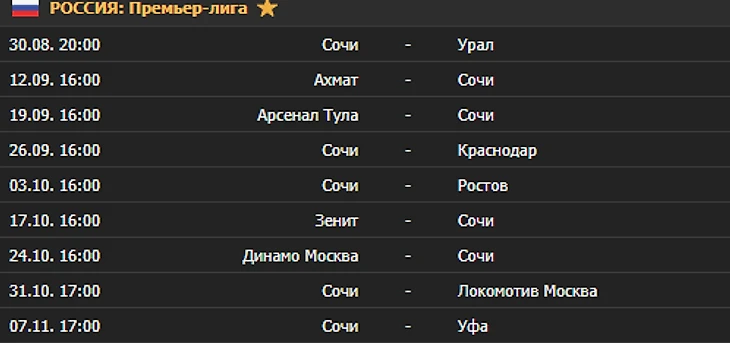 Расписание игр "Сочи"