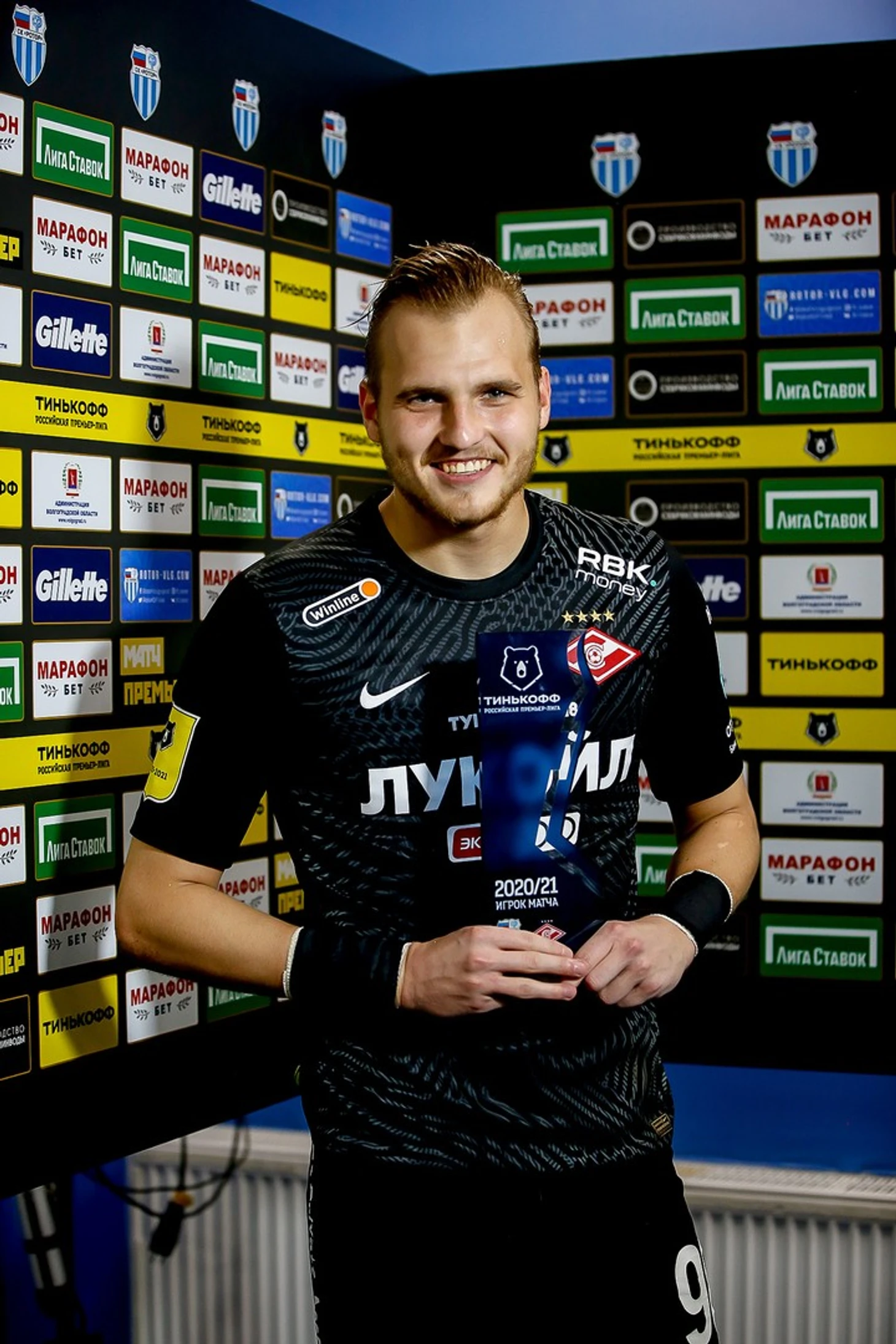 — Тем не менее уже в начале второго тайма Соболев на ровном месте создал гол «Спартака». Грубейшую ошибку допустил новичок «Ротора» Кверквелия: грузинский защитник придержал врывавшегося в штрафную центрфорварда, который откликнулся на длинную передачу Самуэля Жиго из глубины поля. Судья указал на «точку». Любопытно, что пенальти исполнял Зелимхан Бакаев, а не Ларссон, не забивший одиннадцатиметровый в Уфе. Бакаев тоже был близок к промаху – попал в штангу. Но, к счастью для красно-белых, мяч полетел в сетку.