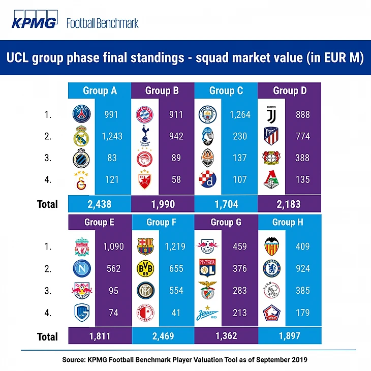 ЗНАЕТЕ ЛИ ВЫ, что в последних двух сезонах в плей-офф выходили только те команды, чья стоимость состава была лидирующей в соответствующей группе (на фото ниже расклад по прошедшей ЛЧ). Единственным исключением оказался амстердамский «Аякс» в прошлом розыгрыше Лиги Чемпионов.