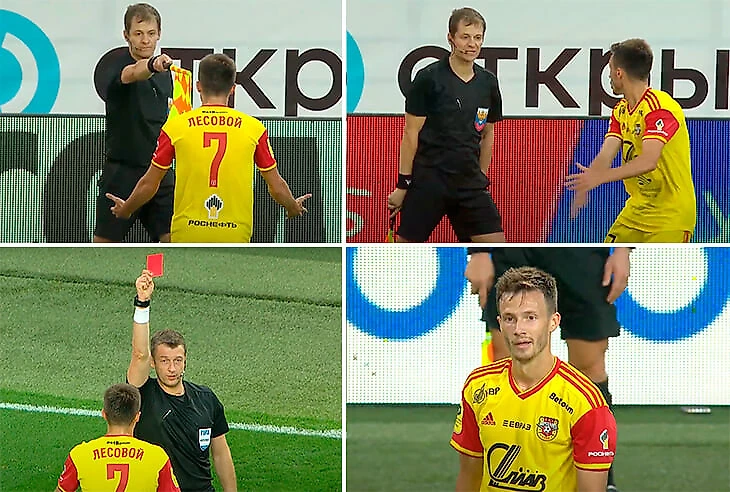 Итак эпизод, где Лесовой получил вторую желтую и очень глупое удаление.