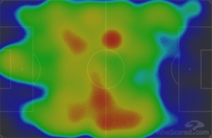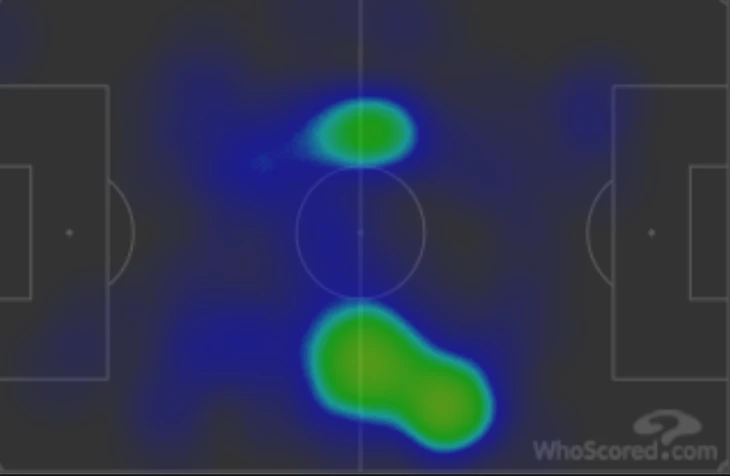 Тепловая карта перемещений Крала по полю: легко заметить, что зоны основной активности чешского полузащитника и всей московской команды совпадают практически полностью.