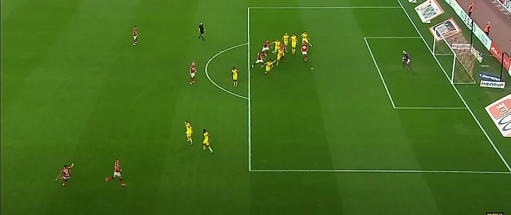 Далее, заработав право на штрафной с правого фланга, красно-белые смогли забить второй мяч.