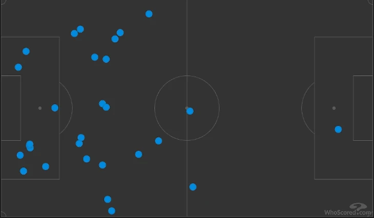 5. Whoscored же признал лучшим игроком матча Мурилло. После неудачного матча с "Ахматом" бразилец провел хороший матч на том уровне, на котором он должен играть. Он уже прибавил в этом сезоне в оборонительных действиях и в начале атак, осталось только прибавить в стабильности и мы получим классного защитника. Защитники "Локомотива" умело действовали против Дзюбы, не дав тому пространства в штрафной площади, в итоге Артему пришлось сваливаться на фланги и пытаться что-то изобрести там. Дзюба не нанес ни одного удара по воротам и отдал лишь один ключевой пас. Из карты касаний нападающего видно, что его основные действия приходились на края штрафной площади "Локомотива" и полуфланги.