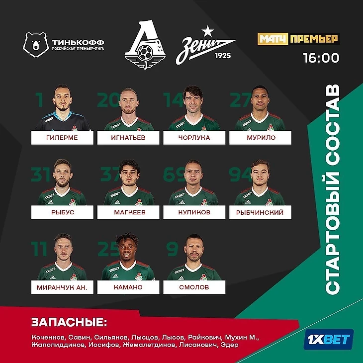 1. Стартовый состав показал, что Николич все еще находится в поиске идеального варианта расположения футболистов. После двух неудачных проб в матчах со "Спартаком" и "Ахматом" он решил вернуться к варианту со вторым нападающим, который не привязан четко к позиции, а играет роль "свободного художника". Таким нападающим стал Антон Миранчук, заменив в этом амплуа своего брата. Кроме того, отдохнув, вернулся в состав Мацей Рыбус, а травмированного Крыховяка заменил Куликов.