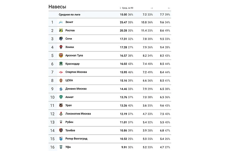 «Зенит» — абсолютный лидер чемпионата по количеству фланговых передач, а особенно старается левый фланг имени Дугласа Сантоса и Жиркова. Оттуда в среднем за игру приходит 15,8 навеса.