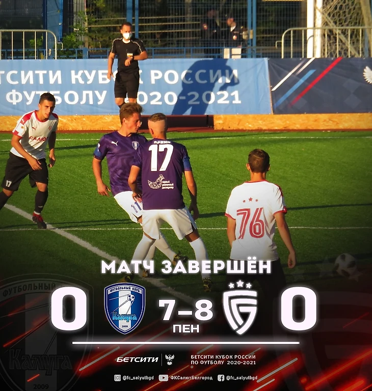 «Калуга» (Калуга) 0:0 (6:7 пен.) «Салют» (Белгород). Белгородцы переписывают планы на сентябрь и уже гадают в клубных соцсетях, кто из больших клубов приедет к ним в гости.
