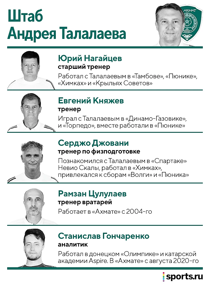 Летом Шалимов распускал игроков «Ахмата» на четыре-пять дней – один вернулся только ко второму туру. Талалаев хочет уменьшить премиальные за ничьи и увеличить за победы – такая схема работала в предыдущих командах