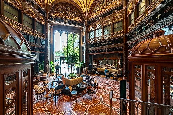 Отель Parisi Udvar (переводится как Парижский двор) входит в сеть Hyatt и считается одним из самых дорогих в Венгрии. Здание построили в начале XIX века как торговую галерею – по примеру парижского пассажа.