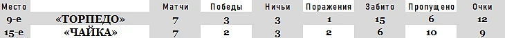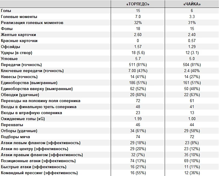 ✔ «ТОРПЕДО» vs «ЧАЙКА»: СРАВНЕНИЕ ИГРОВЫХ ПОКАЗАТЕЛЕЙ (в среднем за матч после 7 туров ФНЛ)