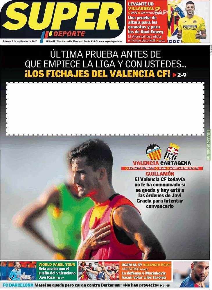 5 сентября валенсийская ежедневная спортивная газета Super Deporte вышла с необычной обложкой.