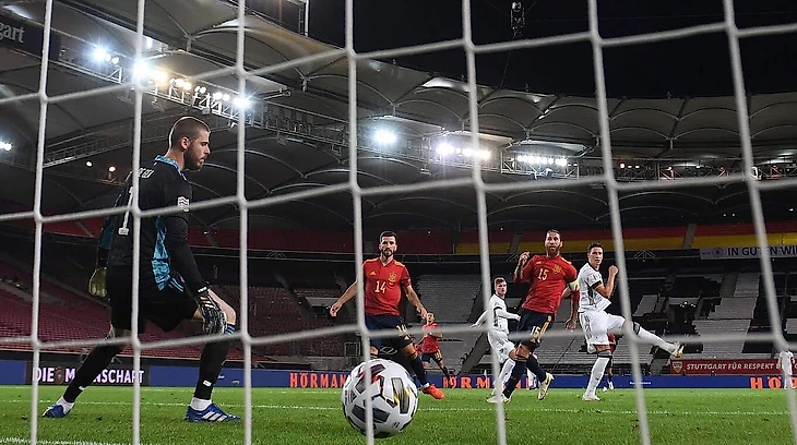 Открыть счет Германии удалось в начале второго тайма. На 51-й минуте после перевода на левый фланг, Гозенс добежал до чужой штрафной, прострелил на Вернера, находящегося в области 11-метровой отметки, который разобрался с накрывавшим его Пау Торресом и вколотил мяч в левый нижний угол. Де Хеа даже не пытался ему помешать: гола было не избежать. Тем самым Вернер забил уже 12-й гол за сборную Германии.