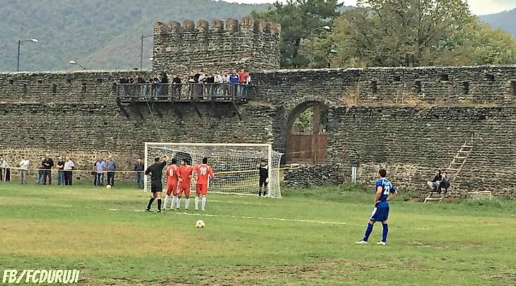 • Поначалу в крепости были только местные турниры: между собой играли жители Кварели. Постепенно сформировался клуб «Дуруджи», который потом попросил разрешения регулярно тренироваться в крепости и проводить здесь же домашние матчи своей лиги. Как вспоминают жители Кварели, тогда игроков «Дуруджи» попросили только самих поставить новые ворота и постричь газон – идею в целом одобрили.