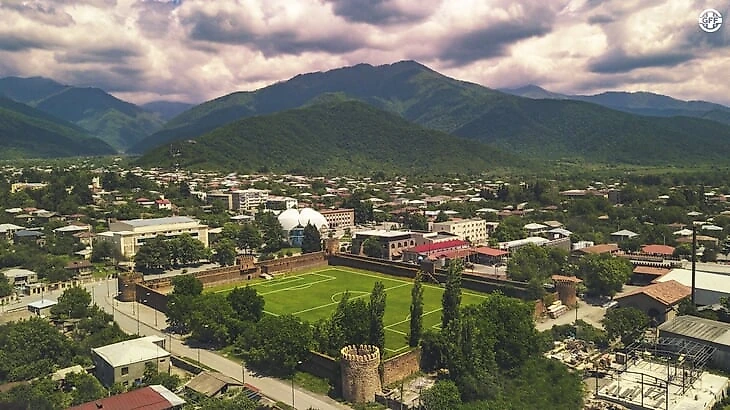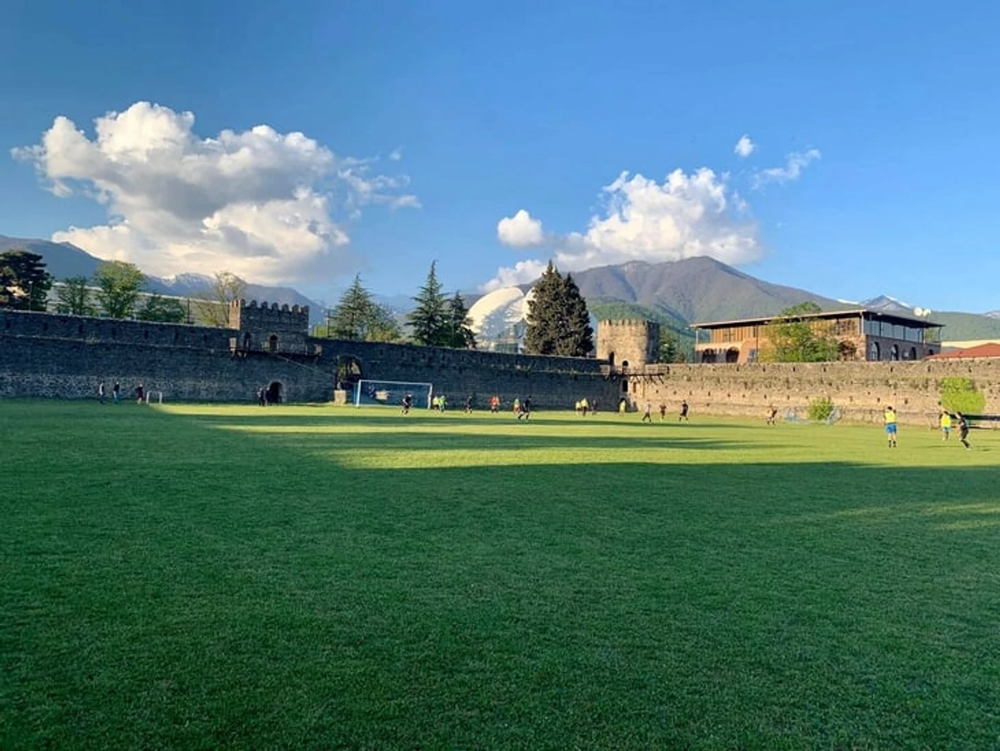 Фантастическое поле прямо в старинной крепости: там играли топ-клубы Грузии, рядом разливают «Киндзмараули» 🍷